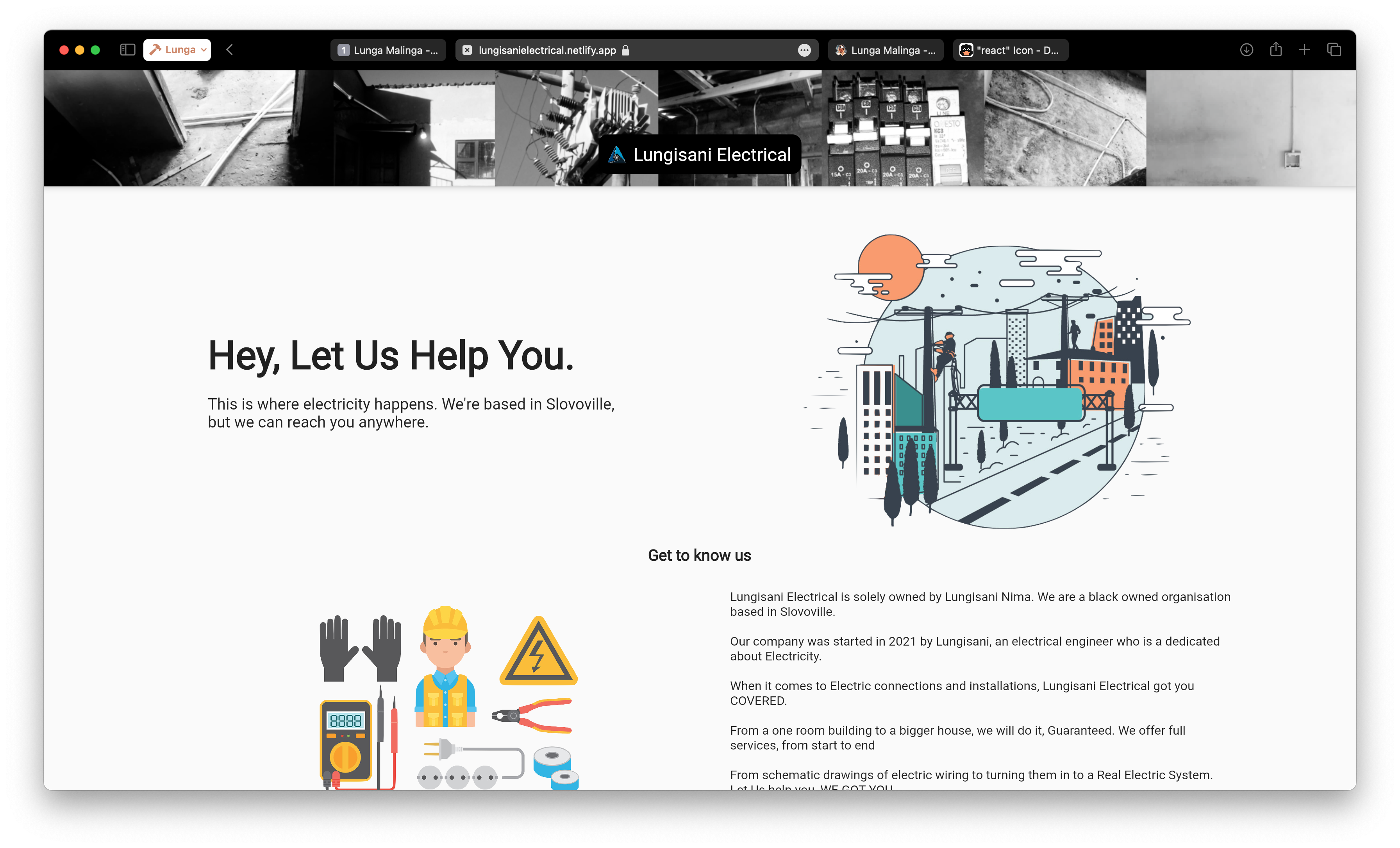 This is an actual basic one page wesbite i created for Lungisani electrical.